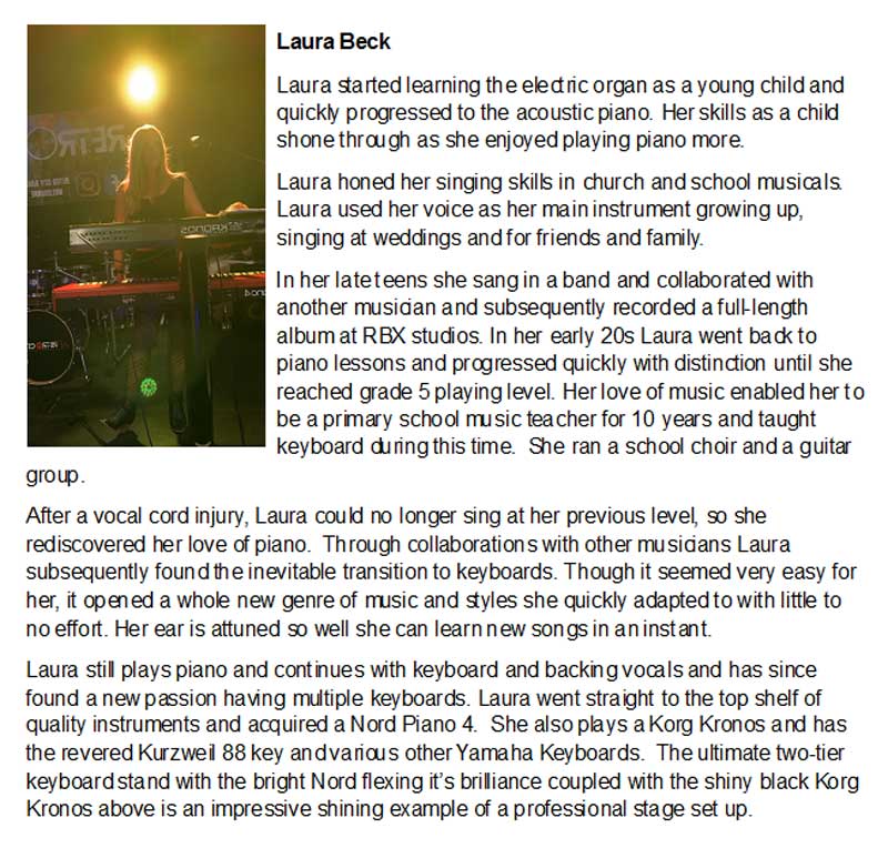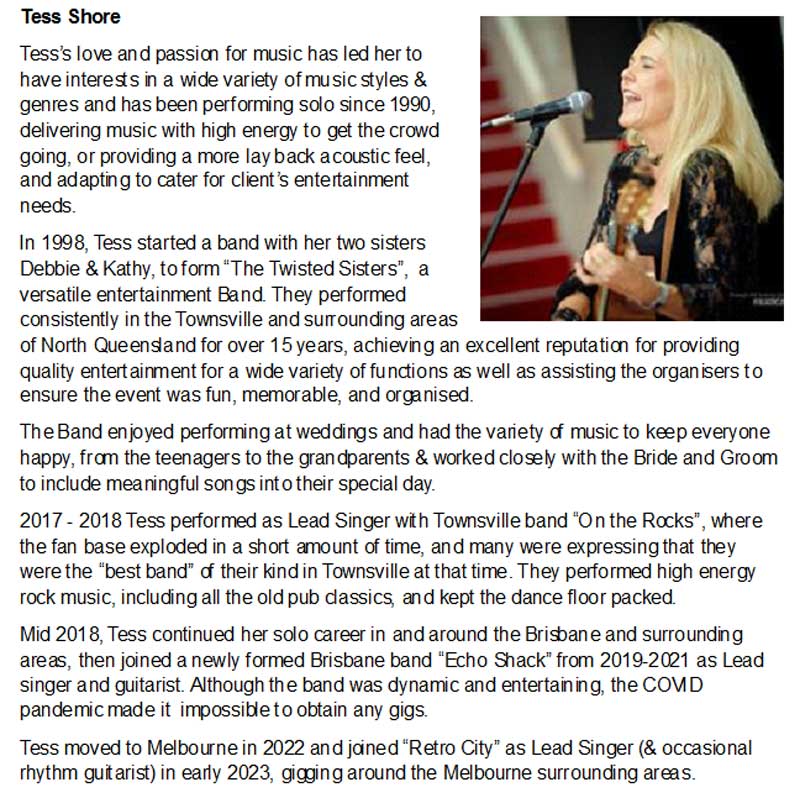 Our lineup features talented musicians: Lead/Rhythm Guitar, Bass Guitar, Live Drums, Keyboard, and a dynamic Female Lead Vocalist.