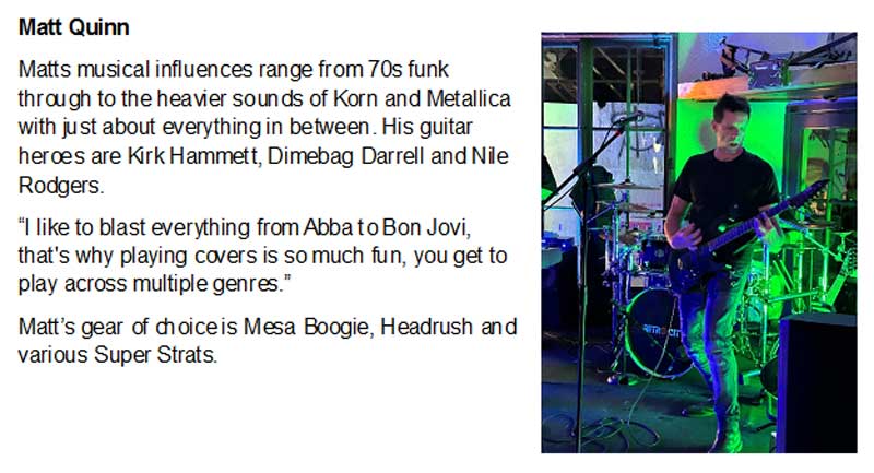 Our lineup features talented musicians: Lead/Rhythm Guitar, Bass Guitar, Live Drums, Keyboard, and a dynamic Female Lead Vocalist.